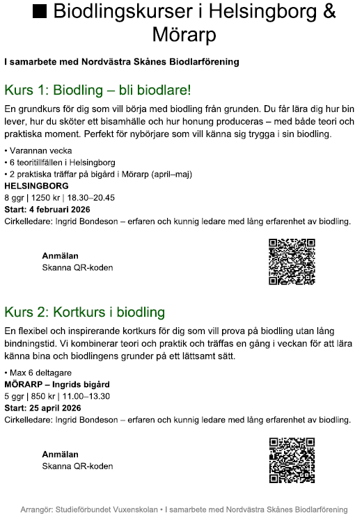 Kurser hålls varje år på olika sätt. Se anslagstavlans förstasida om det finns något för stunden.